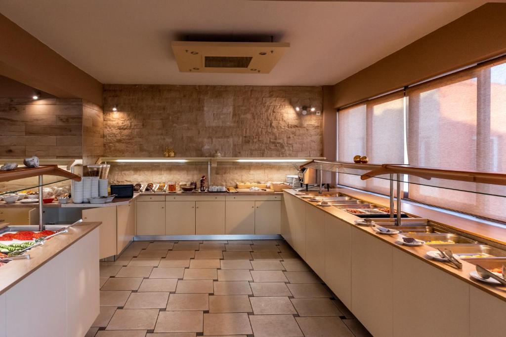 A szállás rendszerint büféreggelivel foglalható, de lehetőség van félpanzió vagy all inclusive ellátásra is. A hotel étterme mediterrán és nemzetközi fogásokat kínál, a közelben található tavernákban pedig a vendégek kipróbálhatják a helyi specialitásokat is.